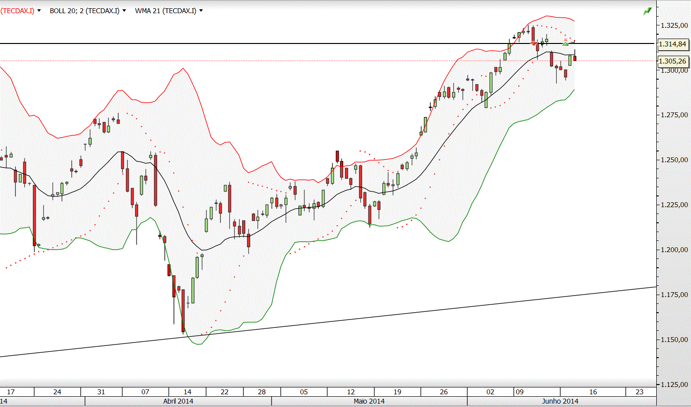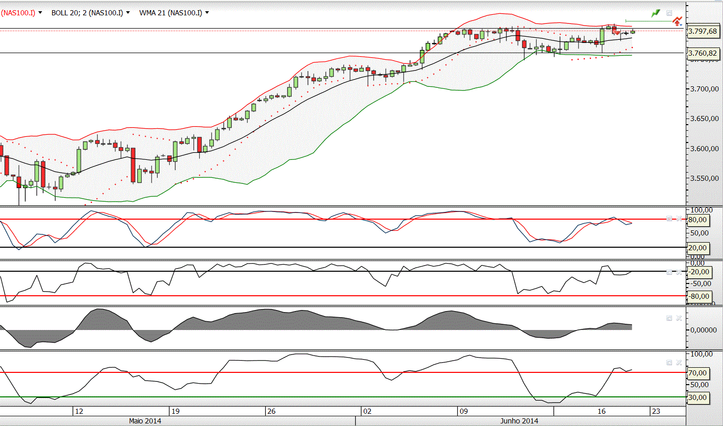 Mesmo com os bons dados do lado de lá do Atlântico e o discurso da Presidente do FED, ao contrário do SP 500, este índice não demonstrou nenhuma força significativa na subida recente ficando, novamente, a rondar os 3800 pontos que, actualmente, se pode configurar como uma resistência.