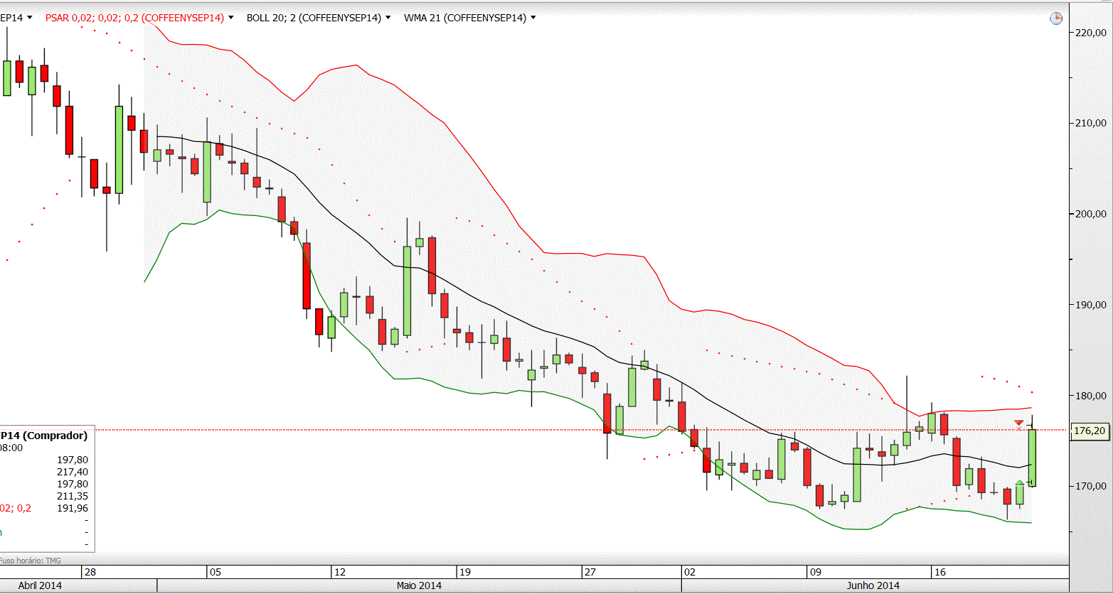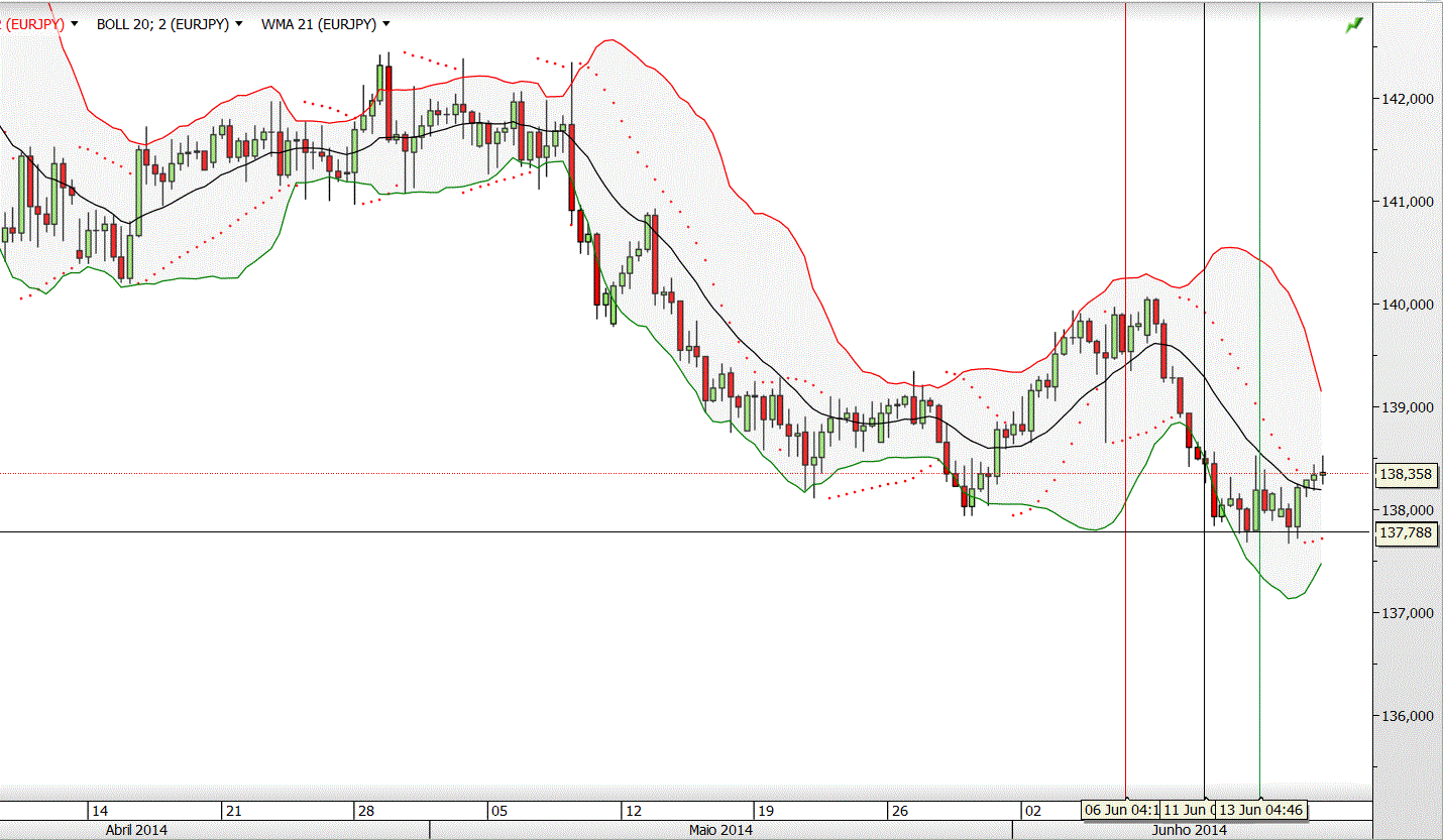 Entrada longa no dia 13.6. nos 138,34 (linha verde vertical no gráfico).