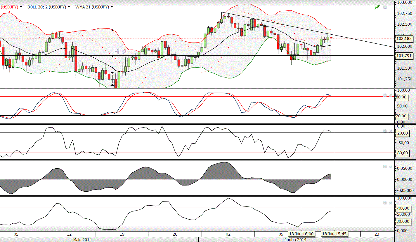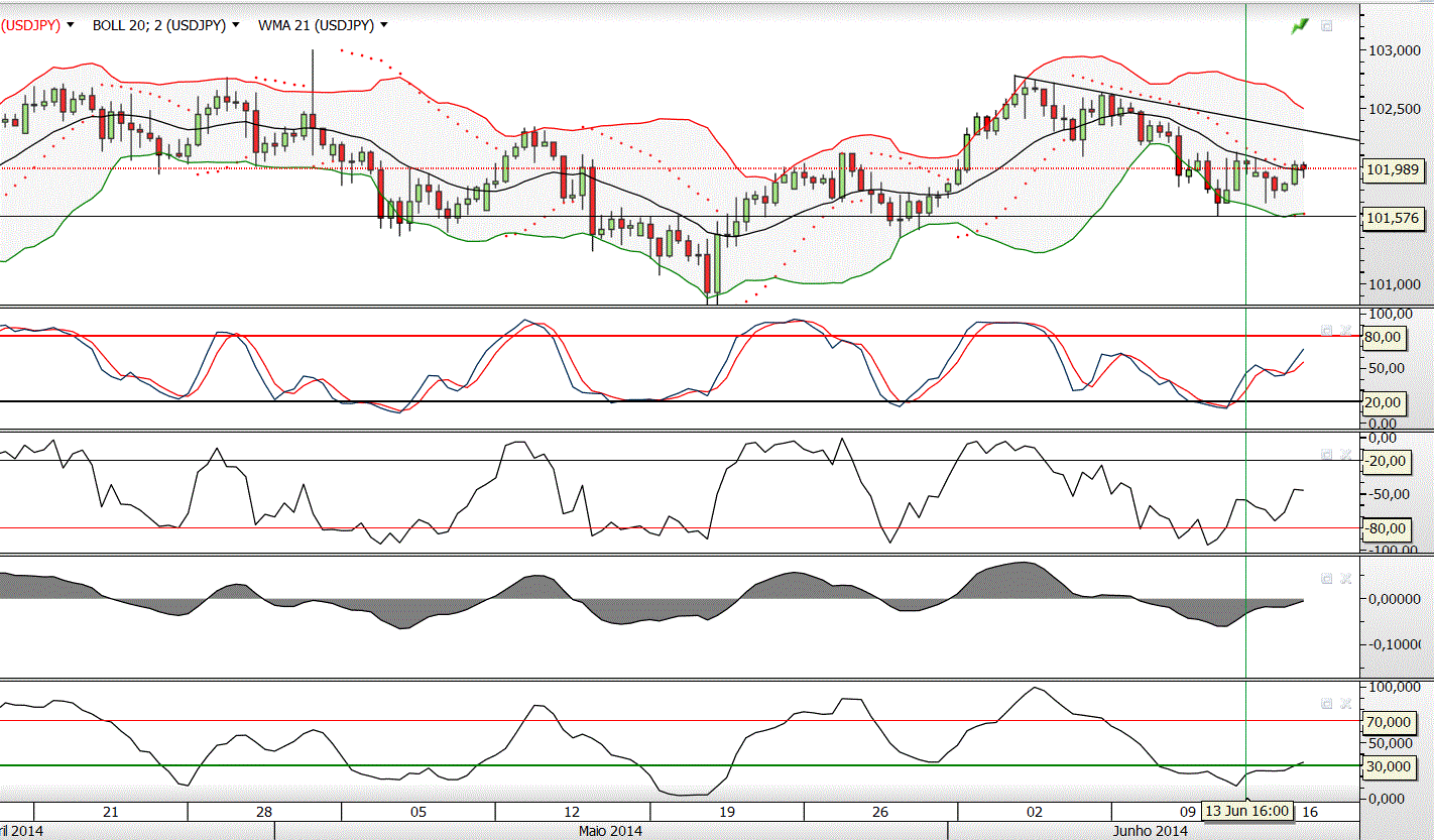A cotação foi ao suporte por volta dos 101,55 - 101,58 e recuperou.