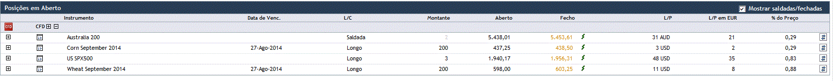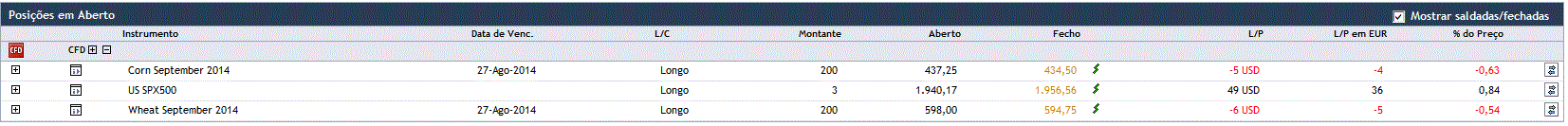 Após o fecho da posição curta no SP500, a carteira (indíces e mercadorias) ficou com os seguintes activos e valorizações/desvalorizações: