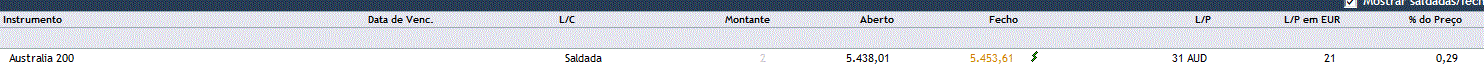 Carteira actual, com as posições abertas e a saldada no índice ASXSP200: