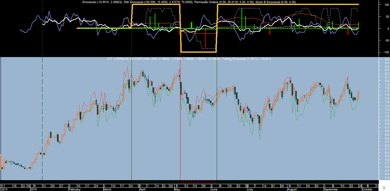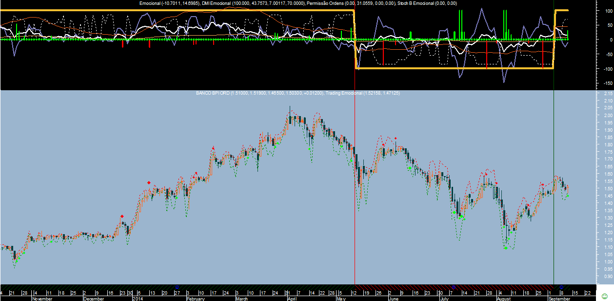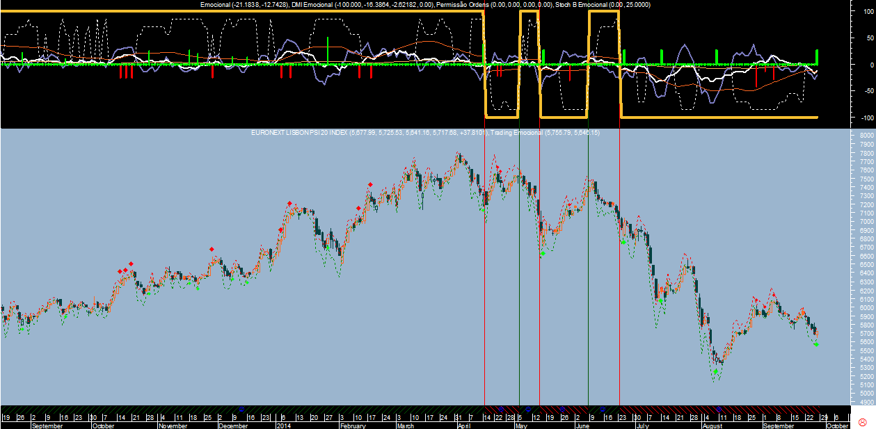 Na realidade falta comparar com o que diz o sistema de trading na escala diária durante esse mesmo período, para isso deixo-te ficar o gráfico com os respetivos sinais.