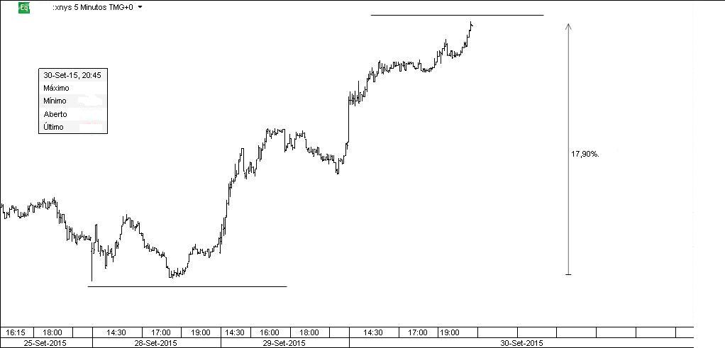 Usando um gráfico de 5 m dos últimos 3 dias para uma primeira resposta à pergunta.