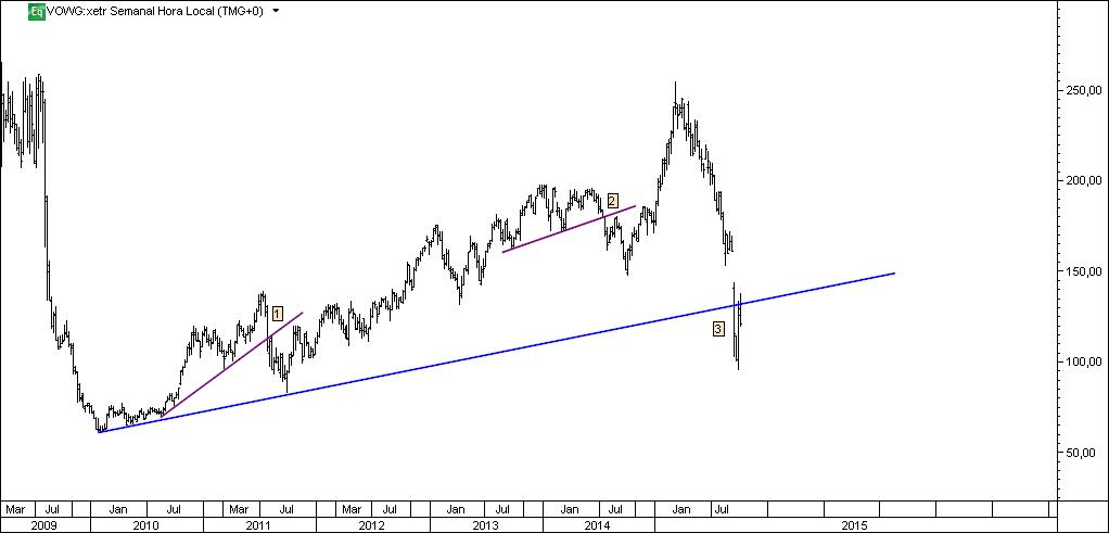 Vamos admitir que se tinha comprado após as quebras das linhas em 1 e 2. O que sucedeu de seguida? O que sucederá em 3?