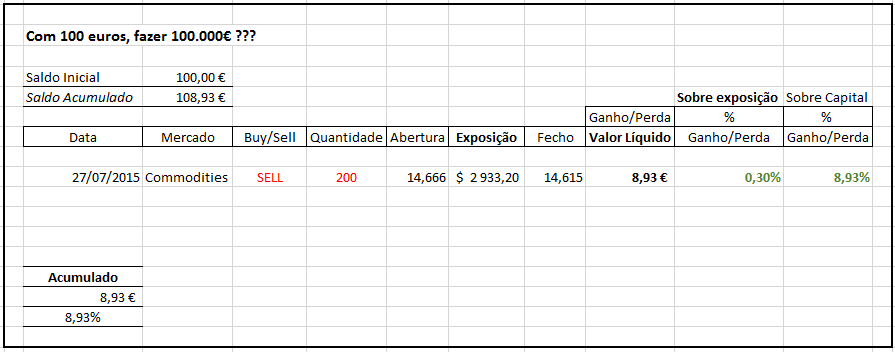Dos 100€ de capital próprio... apenas está a ser arriscado: 91,07€