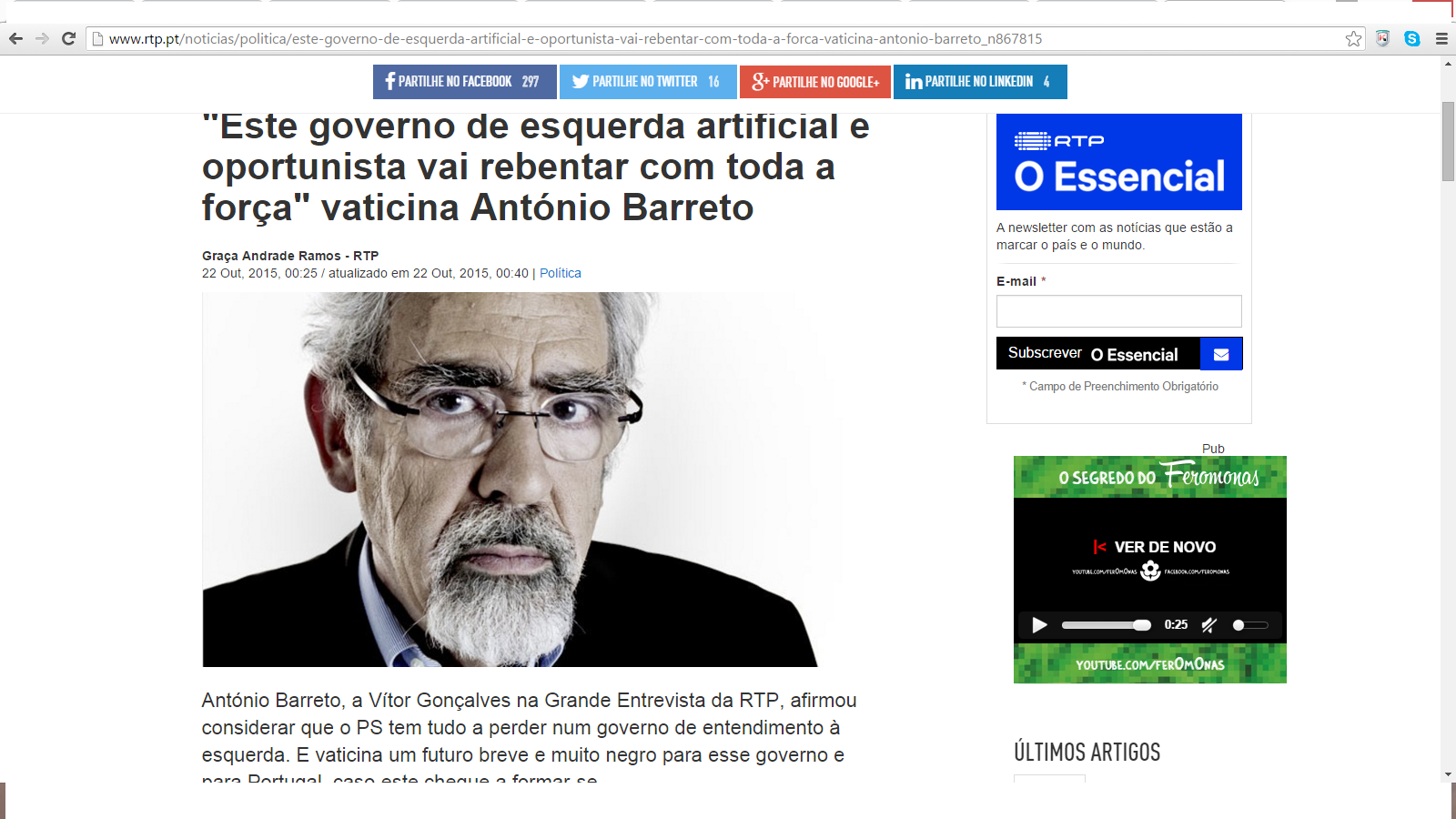 CAVACO, vai a correr ver a entrevista do António Barreto à RTP3, na grande entrevista.