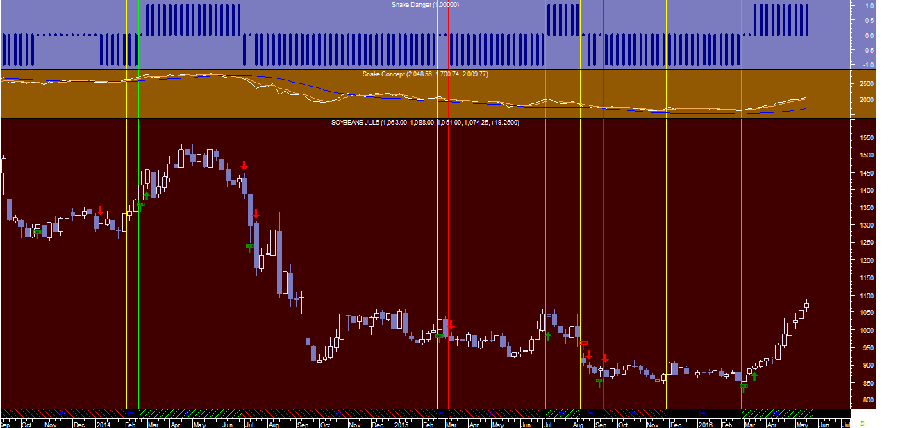 Cem pt Escreveu: Do conjunto de todas as “commodities” existentes em carteira, aquela que na minha opinião poderá conter ainda um bom potencial de valorização a curto ou médio prazo deverá ser a Soja (Soybeans) que aqui fica com os sinais do sistema da “Cobra”, quer na escala diária quer na semanal.