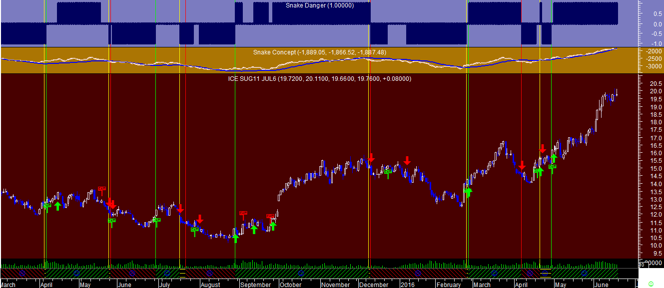 Quanto ao que se passa com as eventuais posiçoes da “Cobra” noutras "commodities" que nunca referi, pus por curiosidade o sistema a trabalhar para ver o que se passava em dois desses futuros: o Café e o Açúcar.