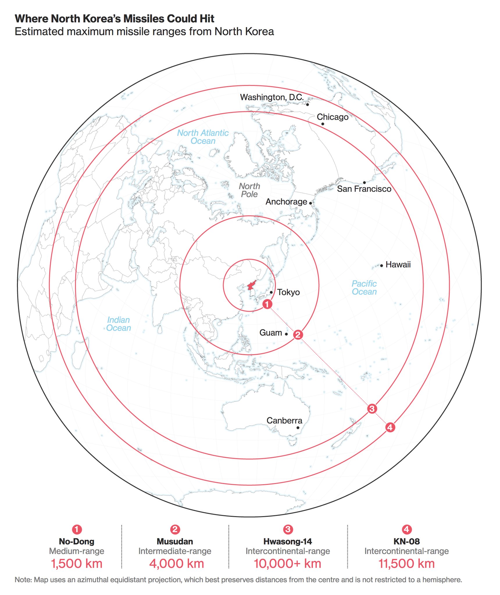 Major update: Estimated maximum missile ranges from North Korea