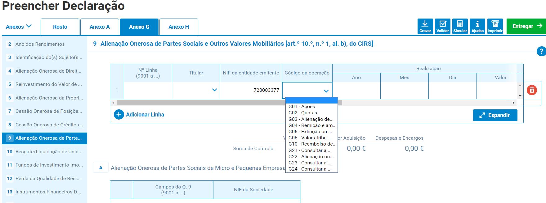 A situação que referia era das valias, que são tratadas da mesma forma, o anexo é o G e o J, mas têm a mesma categoria no código e o valor sem englobamento estará a dar mal, pois elas nesse caso são tributadas em 28% e isso não aparece na simulação.