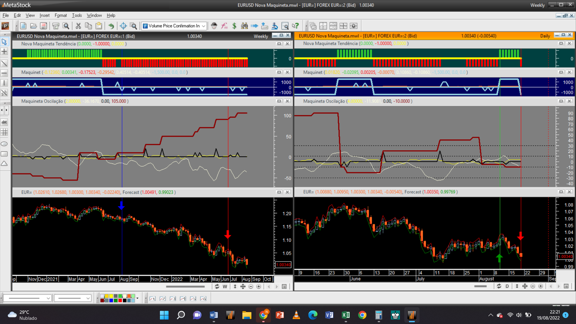EURUSD - Sistema de trading Nova Maquineta / Layout com escalas 1S + 1D