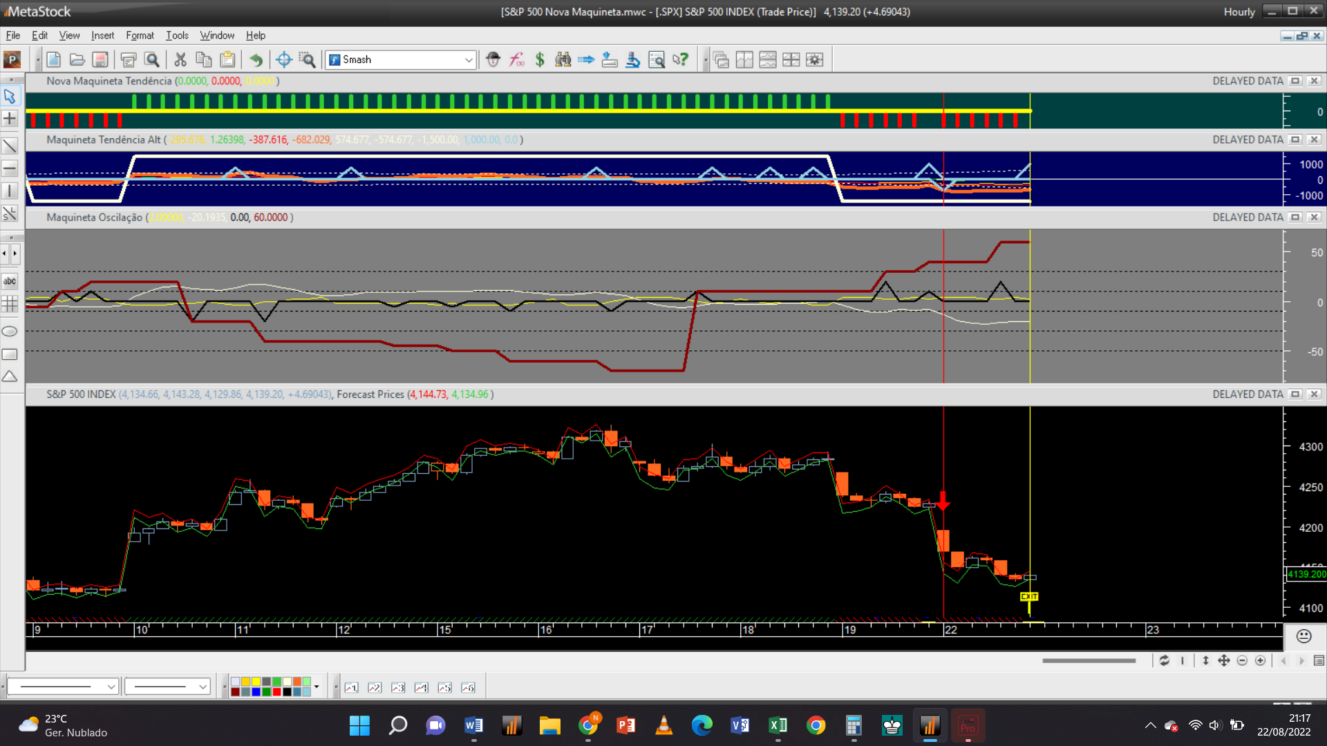 Tivemos assim às 21h uma ordem de compra ao mercado para encerrar uma posição curta tendencial ao preço de 4229 Usd / contrato.