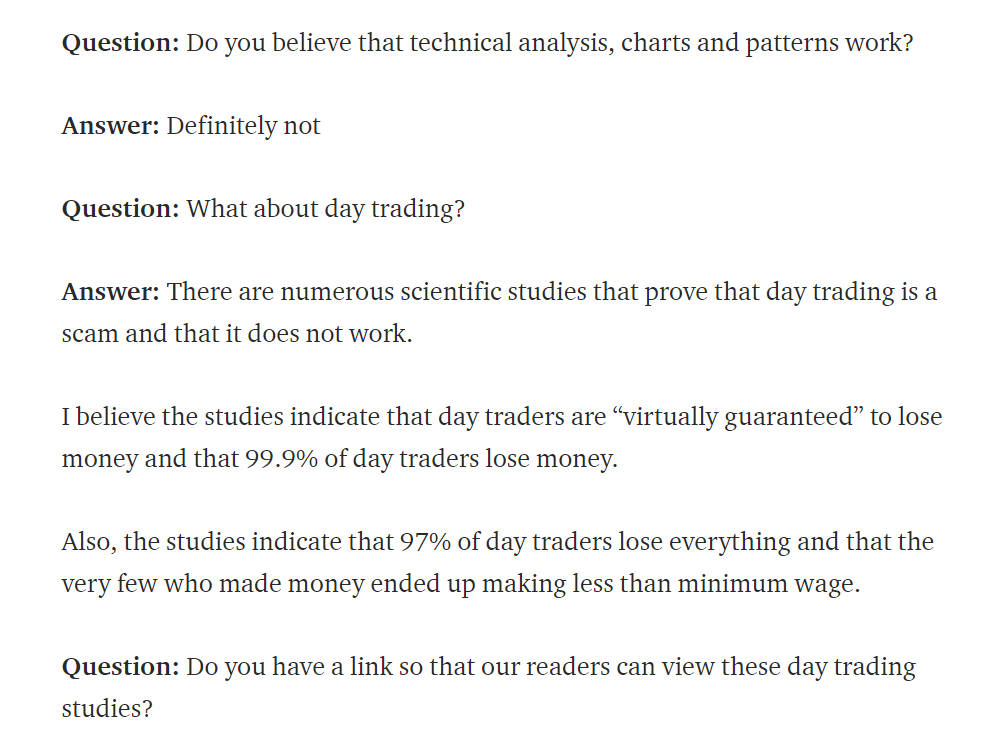 - Se bem entendi o argumento chave que resume uma chamada de atenção deveras importante: à medida que o nosso período médio de permanência numa trade diminui, diminuem igualmente a rentabilidade e a eficiência dos negócios efetuados. Ora aqui está uma grande verdade que partilho, no passado já o afirmei também por diversas vezes aqui no fórum e chamei a atenção para os perigos do day trading! E podem ter a certeza que voltarei a chamar a atenção para os riscos deste tema sempre que achar oportuno.