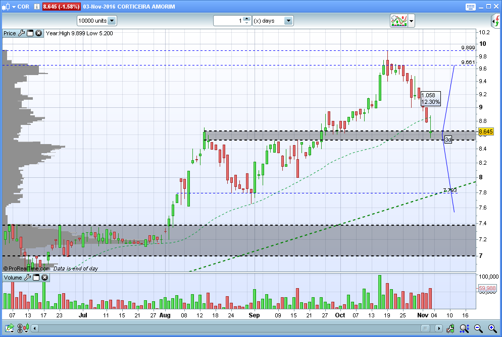Pois, a minha questão é que eu coloquei stop quando entrei nos 8,44 bem curtinho abaixo deste suporte e agora não sei que lhe fazer. Mas acho que o vou retirar e tentar reforçar amanhã mais abaixo, vou ter que encarar isto de outra forma. Mais numa óptica de investidor do que de trader. Apesar de já estar a apanhar o comboio tardíssimo. Enfim, logo se vê como corre amanhã, também o lote não é muito grande.