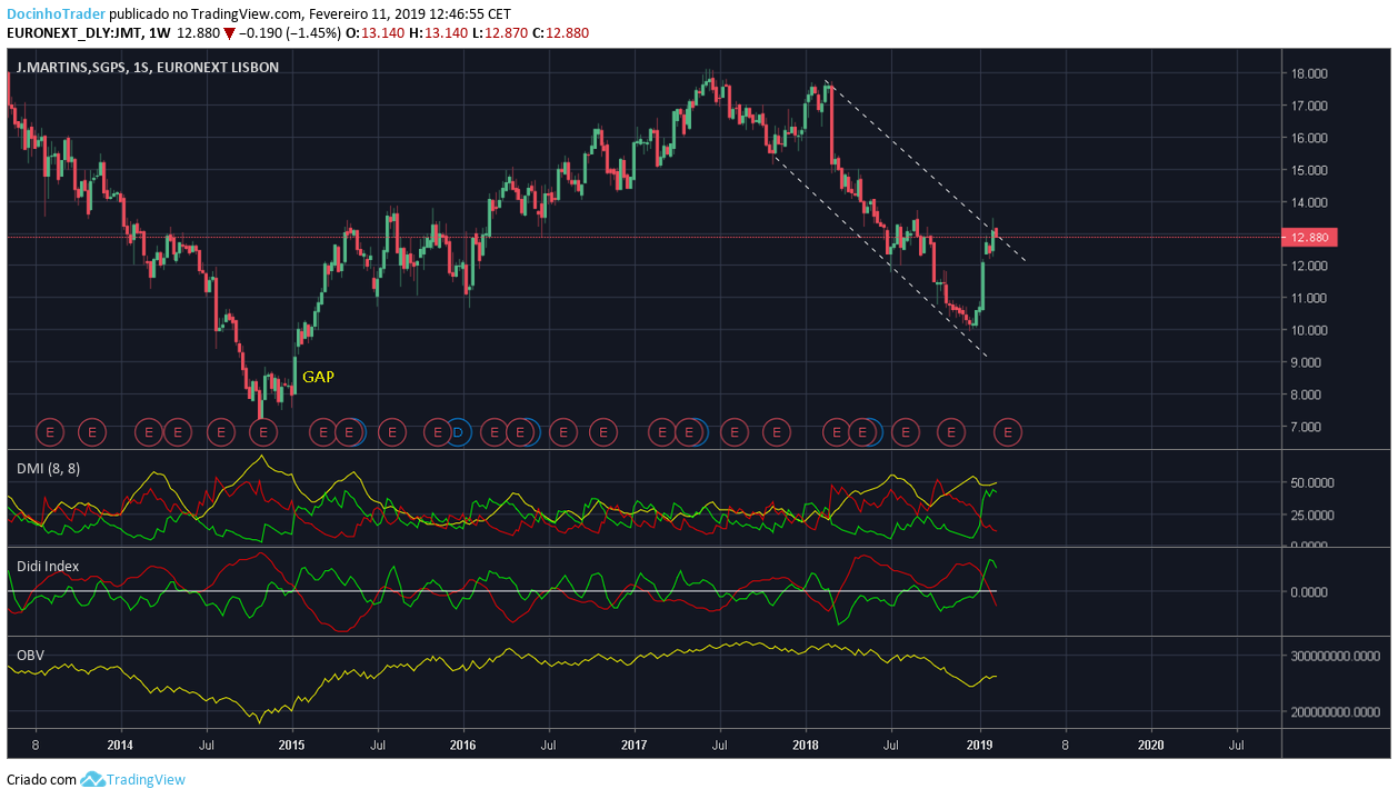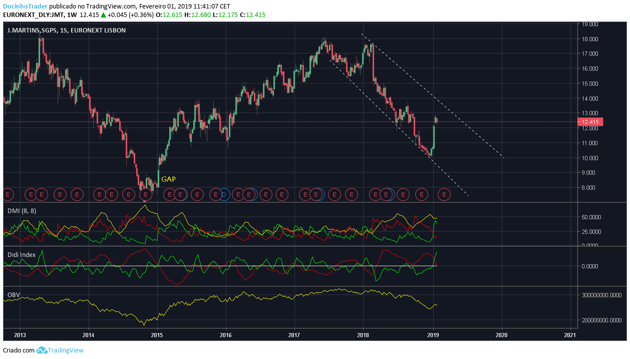 Deixo os gráficos actualizados da JM que está hoje a ter um bom dia depois da retracção (quase inevitável) que ocorreu no teste à sua zona de resistência.