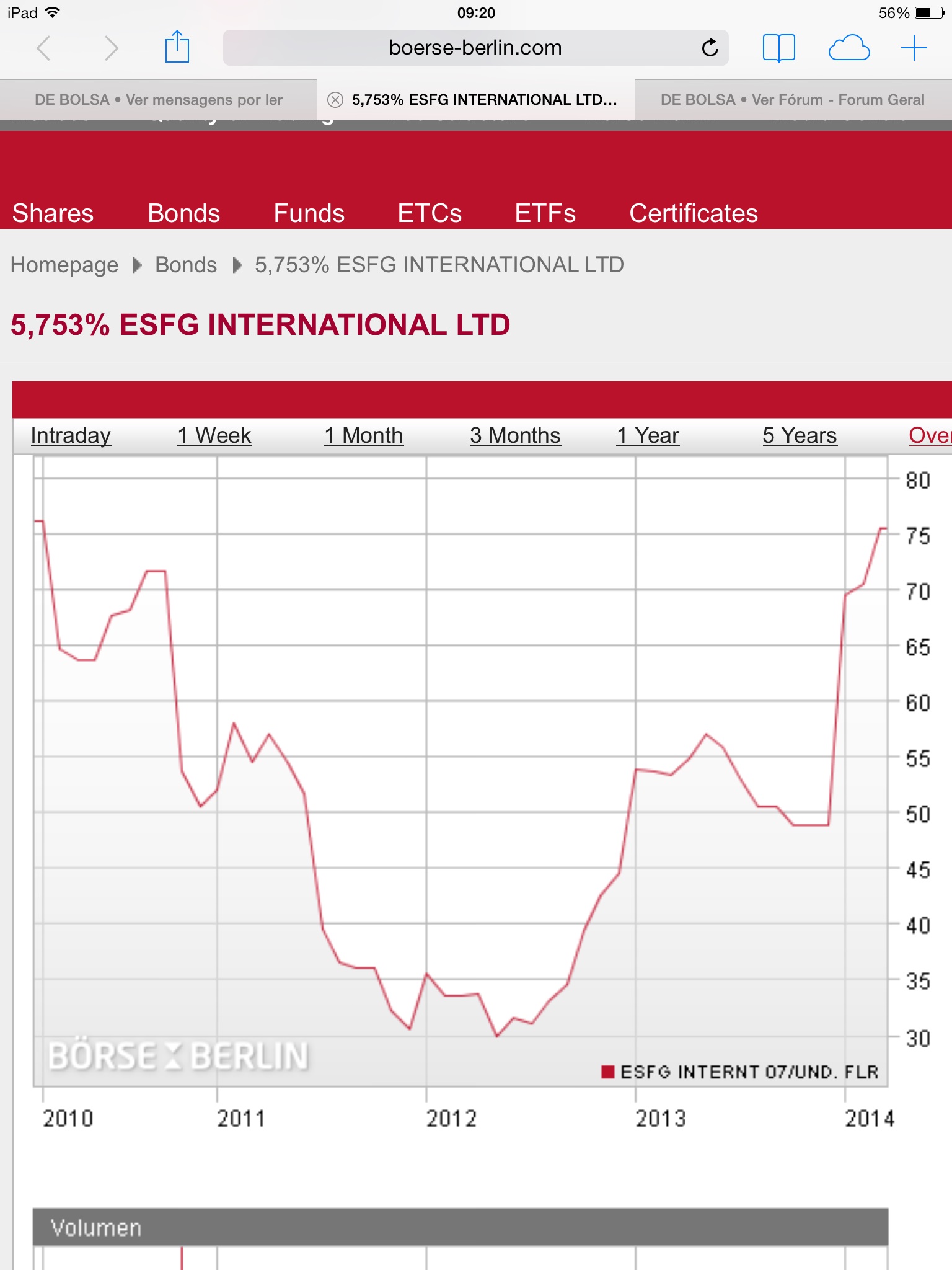 Estas perpétuas da ESFG decidiram fazer uma boa arrancada em 2014 com um bonito IHS. Espero que cotem a valores perto das perpétuas BES com as mesmas características (que já vão a 92,50%)