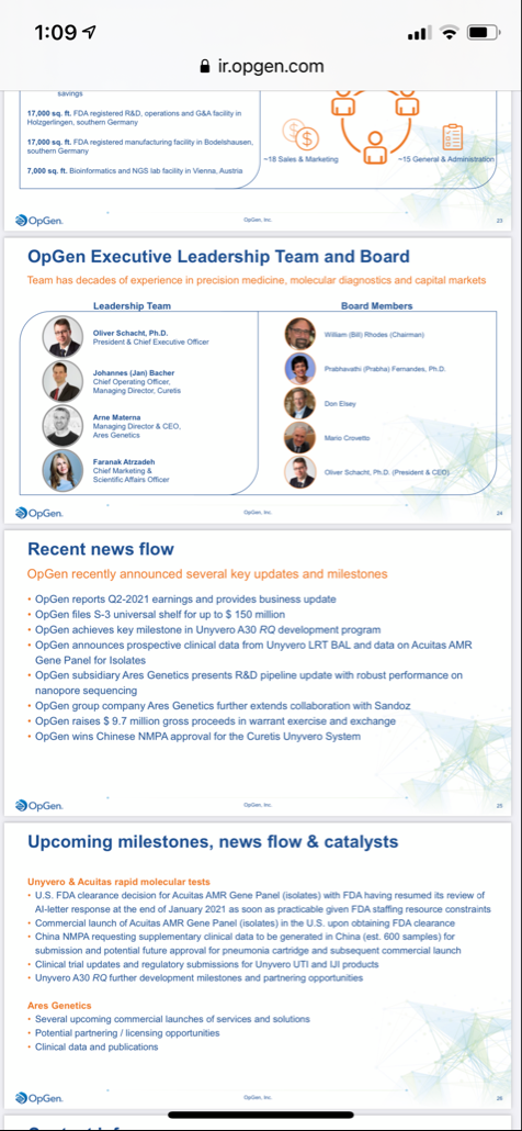 A OPGN é uma Empresa Biotech Small Cap que tem vários "momentos" em Pipeline (não sei se o anexo se vê bem, mas em baixo está o que têm em espera de futuro). O site deles também o terá. Podes sempre ler durante umas horas o Stocktwits e ficas logo com a ideia