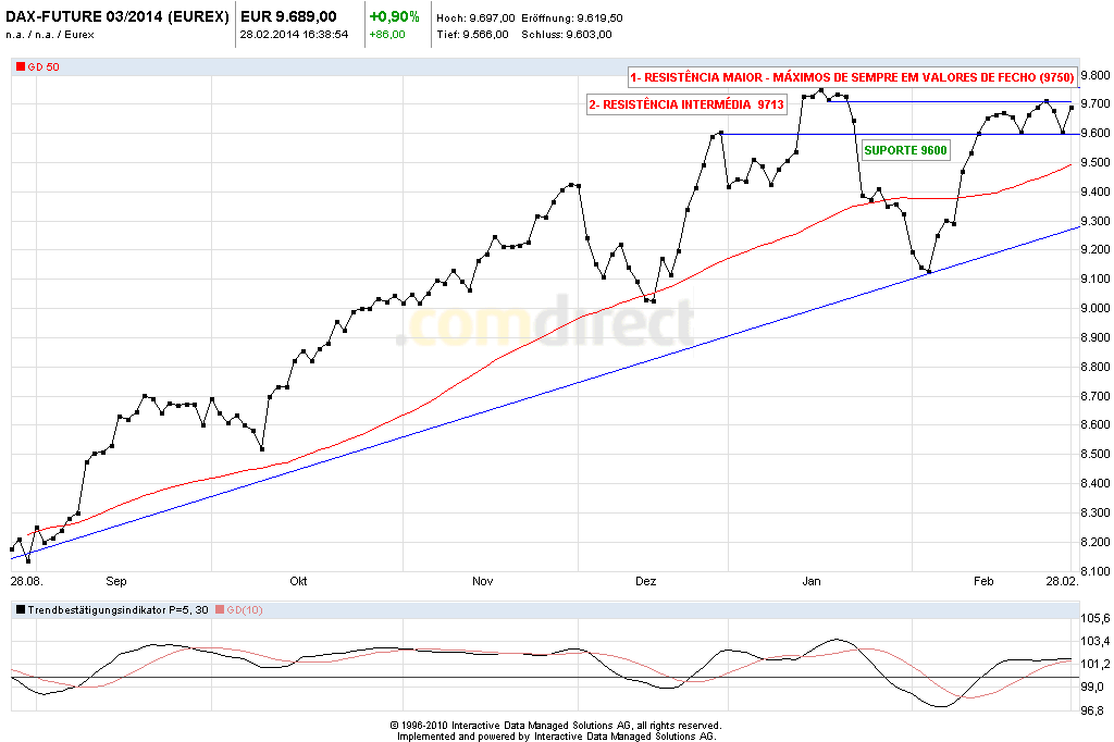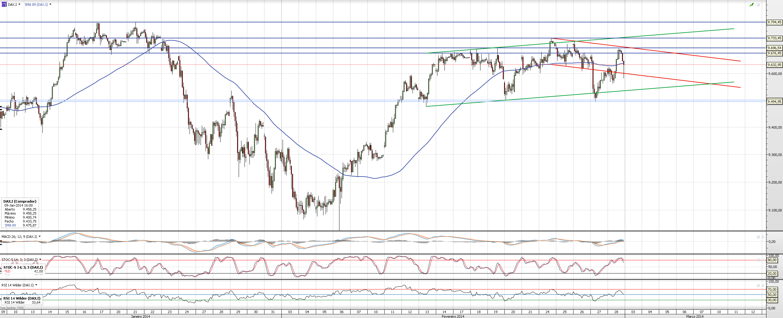 No DAX, não consigo descortinar qual será o movimento no curto prazo, fundamentalmente esta situação da Ucrânia vs Russia não é adequada para os mercados e devemos estar prestes a presenciar um sell-off de manhã. Mas tenho dúvidas que seja para durar se acontecer, tenho o feeling que irá acabar por ser um dia bullish tal como aconteceu na sexta-feira (muito pela força dos mercados americanos).