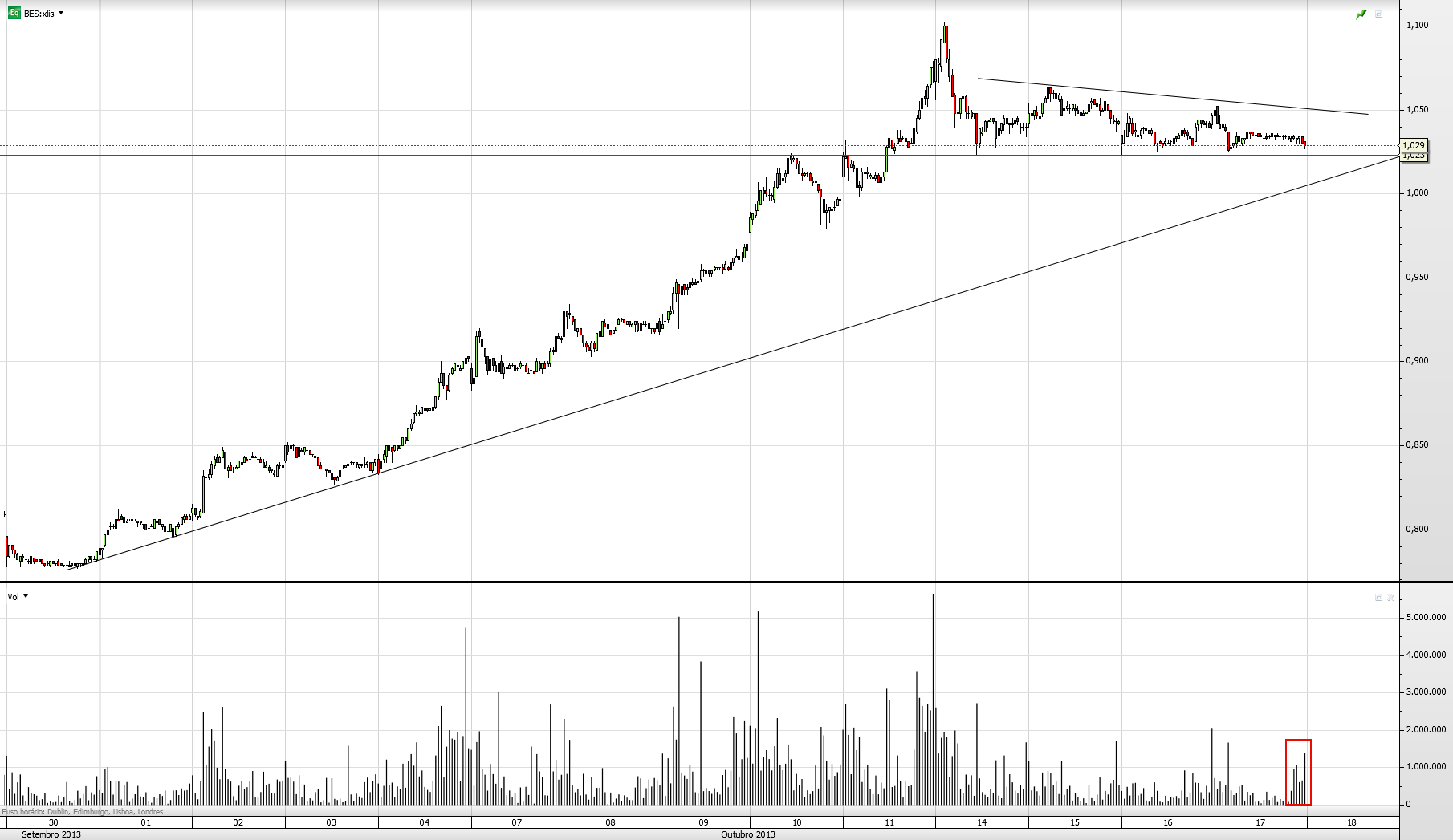 Por isso, esta aparente consolidação nos 1,03€ pode ser uma importante base para testar a referida resistencia nos próximos dias.