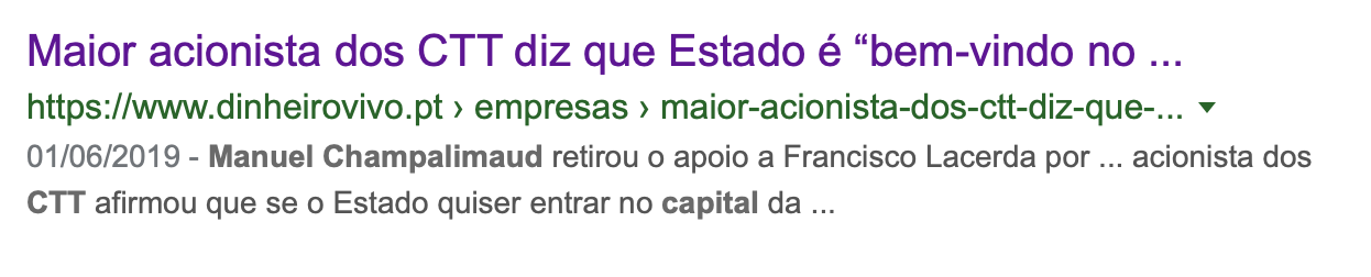 Quanto à outra parte da questão, tens aqui a lista dos actuais accionistas de referência dos CTT: https://www.ctt.pt/ctt-e-investidores/relacoes-com-investidores/estrutura-acionista.html