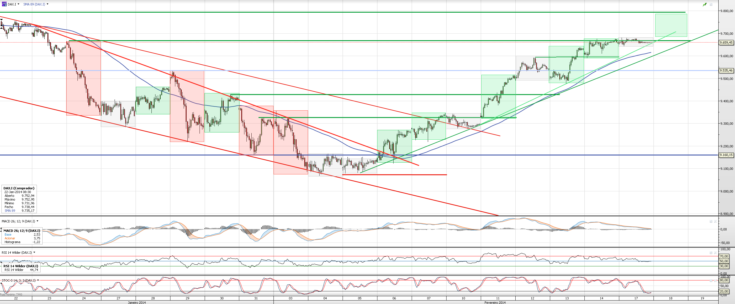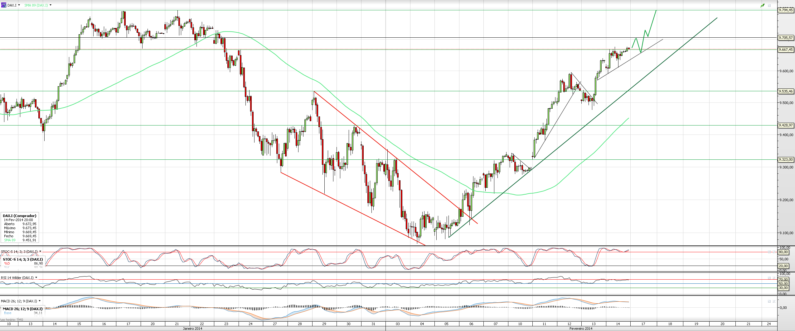 Na minha opinião, o DAX vai continuar a subir esta semana e se houver um pullback no decorrer da semana, julgo que será uma boa entrada para entrar longo.
