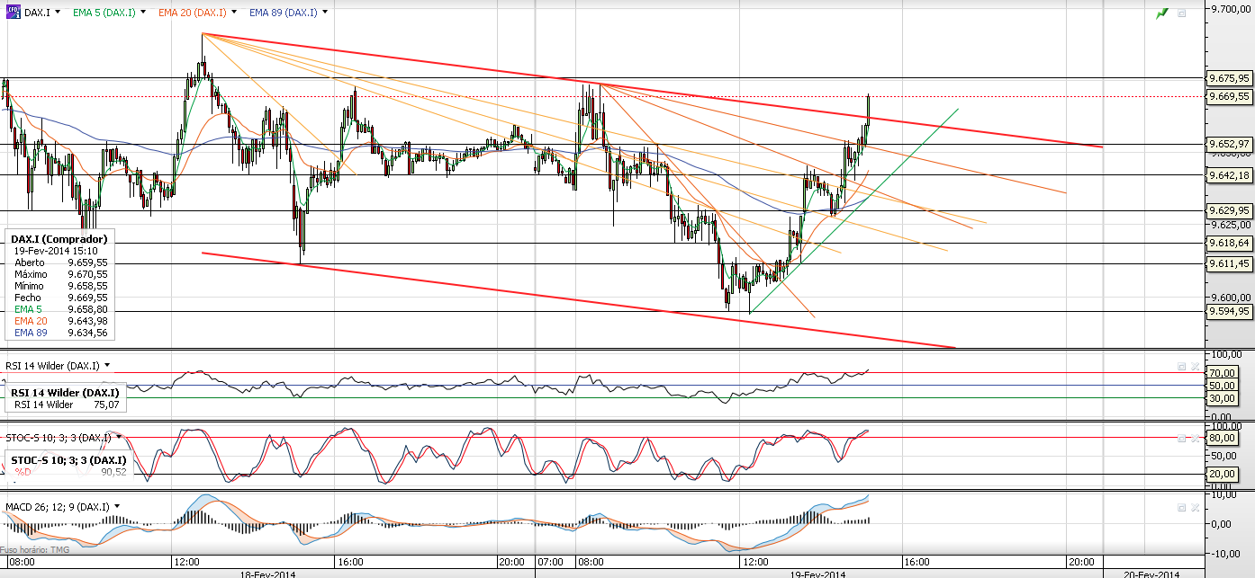 - O racional da minha entrada: vi o DAX a descer entre 07h-08h e quando quebrou os 9642 entrei, pois foi um price target que aguentou várias ondas ontem. Mas a volatibilidade é tanta que depressa se esfumou aquele movimento de subida, e veio na minha direção, fechei quando começou a voltar no sentido oposto e fiz bem. Tinha como profit target os 9600, pena não ter chegado lá.