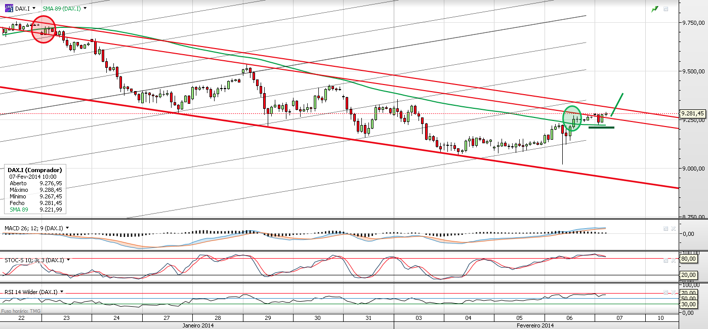 A recuperação que fez demonstra bastante força em querer ficar cá em cima! Julgo que poderemos ver o canal descendente quebrado e entrar na onda dos longos depois dos 9330. Até lá acredito que vamos ver alguma volatibilidade cima e baixo. Mas vamos observar e esperar pelo momento oportuno.
