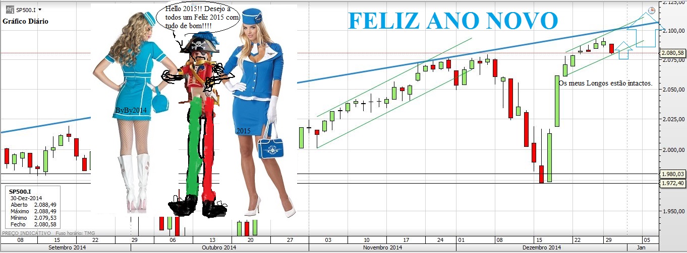 Antes demais desejo um bom ano a todos. Agora, terminadas as festividades, à que olhar novamente para o que se passa nos gráficos. Pois bem, a vela do dia 31 trocou-me as voltas e os meus Longos aqui anunciados foram todos fechados. Agora não tenho nenhuma posição, embora tenha já um plano muito simples.