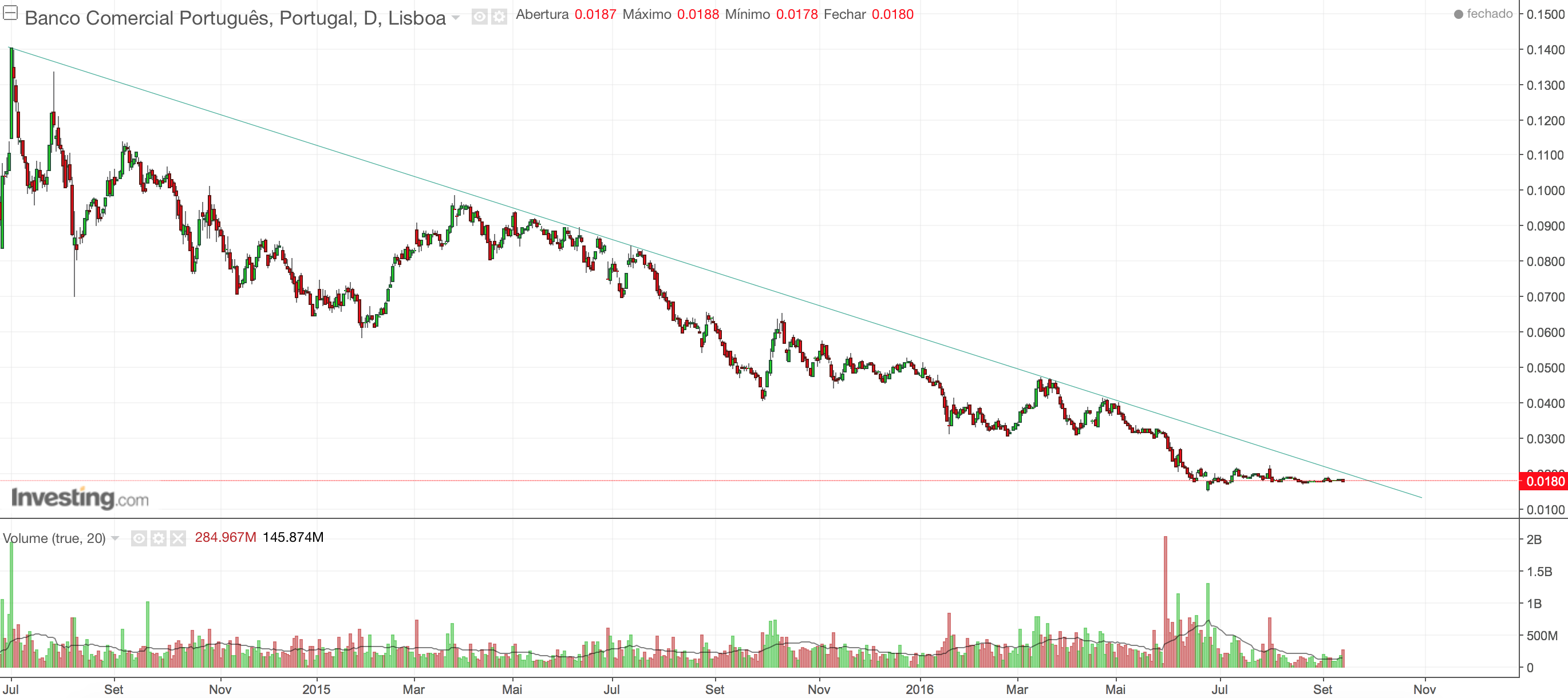O valor mínimo histórico da cotação do BCP é 0,0151 euro!