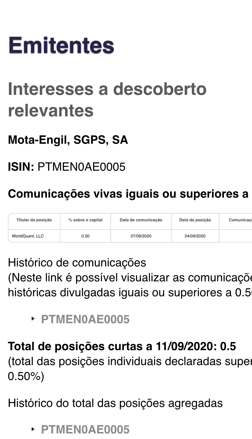Quanto à Mota, os shorts que tinham posição aberta no dia da "parceria" seguramente olharam com perplexidade para a conta no final do dia, e podem ser uns dos interessados em fazê-la cair de modo seguro mas constante, basta olharmos para a LTD de curtíssimo prazo que se desenhou (não foi um pump & dump clássico). Outras vantagens levar-nos-iam a conceitos de Direito Comercial e Societário e opto por não maçar a audiência com especulações porque nunca passariam disso. Mas, neste caso, não deixa de ser estranho que, sem nenhuma notícia negativa (pelo contrário, com mais quase 500 milhões de obras em Angola e PT pelo meio!), ela não se tenha aguentado lá em cima porque a operação é, em teoria, bastante positiva pelo conforto que dá à empresa.