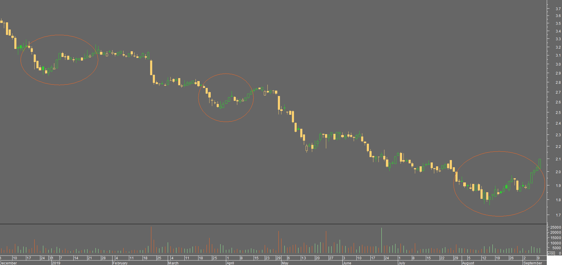 tal como outras cotadas esta é um caso de estudo. Esteve na casa 1.70 e 2.16 em cerca de 2 meses. Variação de cerca de 18%.