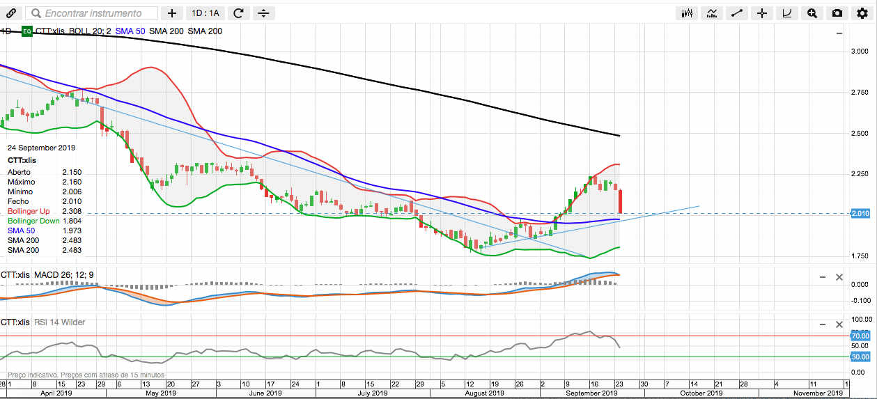 Por outro, os CTT tem grande probabilidade de tocar a LTD nos €2,30 / €2,40, e retraírem novamente.