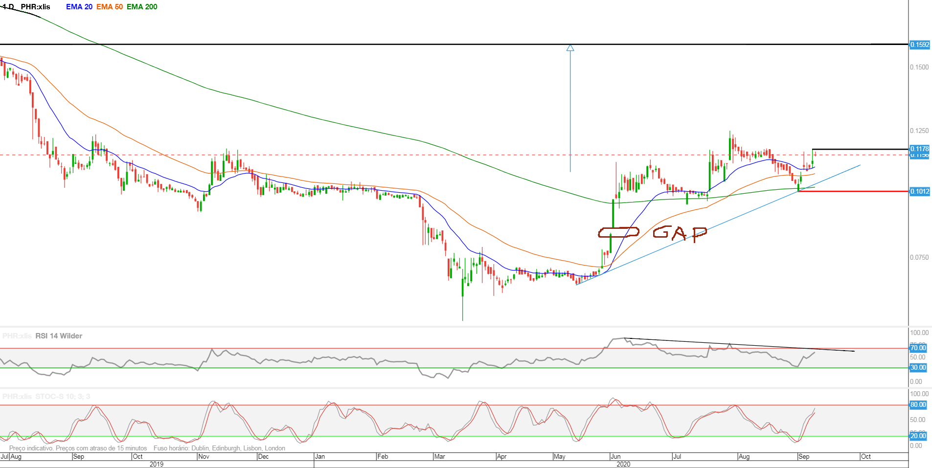 Bem sei, que a cotação da PHR não tem reflectido aquilo que tenho afirmado nos ultimas semanas. Na minha opinião, deve-se a interesses "superiores" ( que desconheço ), que pretendem manter a cotação nestes niveis ( caso não tivesse existido a queda da cotação para os niveis de 0.06 € devido à crise COVID19 a nivel mundial, podiamos afirmar que a PHR está na fase de "acumulação" sensivelmente há um ano ).