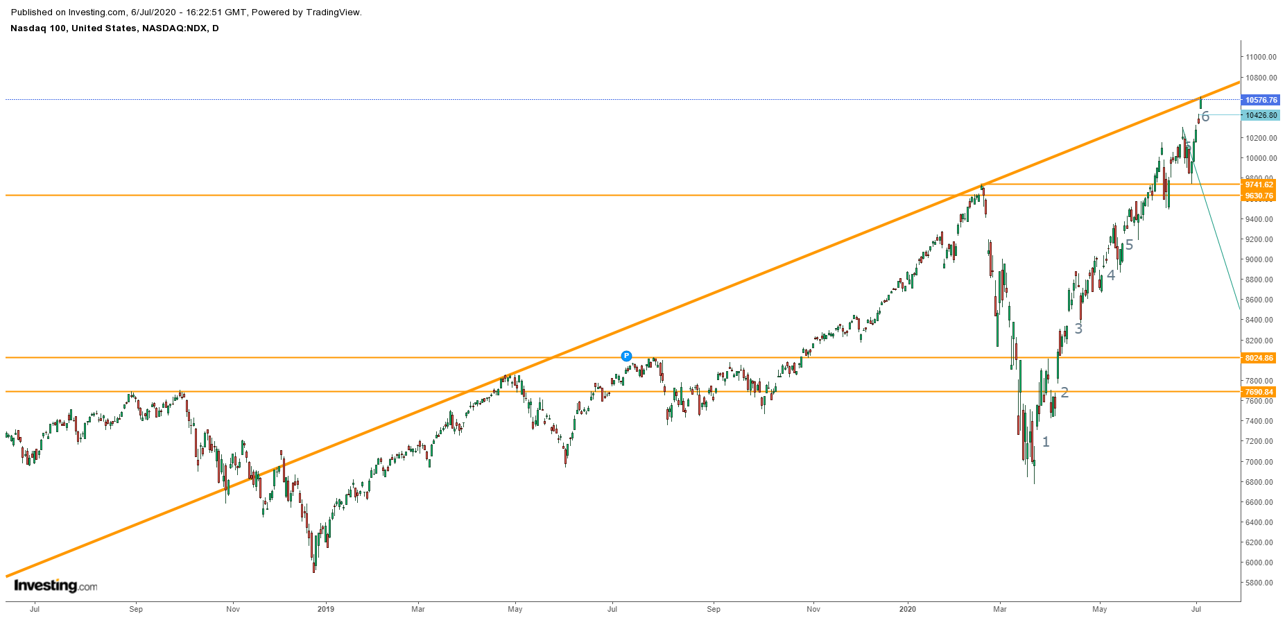 Navete, é muito provável que estejas a ver bem, pois já várias ações do Nasdaq mostraram as suas antenas de exaustão. há ações que valorizaram mais de 18.000%, talvez mais com os desdobramentos de ações e pode dar-se mesmo uma queda violenta. Agora acredito nisso, tanto mais que se aproxima a reunião dos líderes europeus. Posso estar enganado, mas acredito que dessa reunião sairá sangue para as tecnológicas americanas.