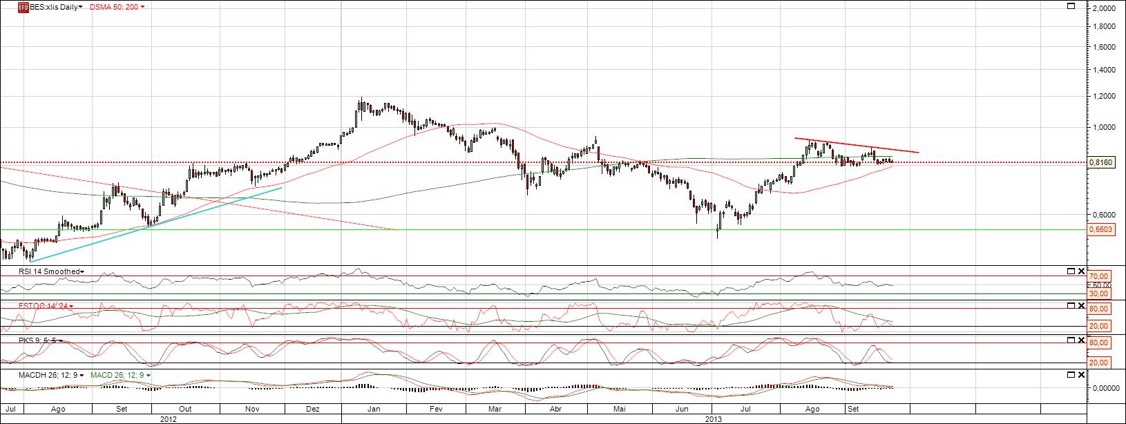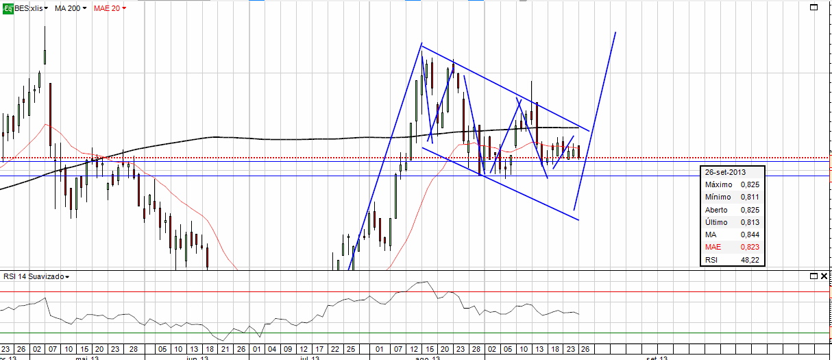 O BES está a num momento interessante, o suporte dos 0,8 tem funcionado na perfeição e está em formação uma possível golden cross.