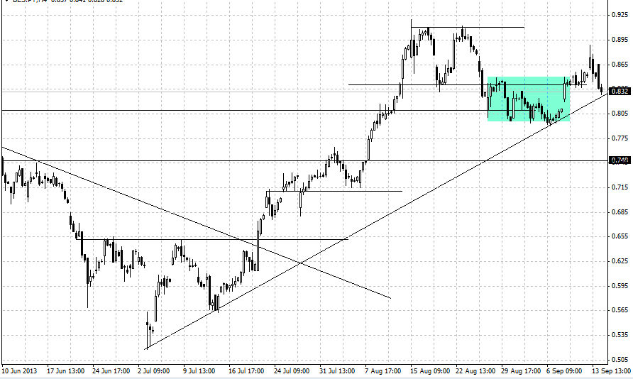 Caso quebre a LTA e depois o mínimo do dia 6 de setembro, vai visitar, para já, a zona compreendida entre os 0,768 e os 0,717.