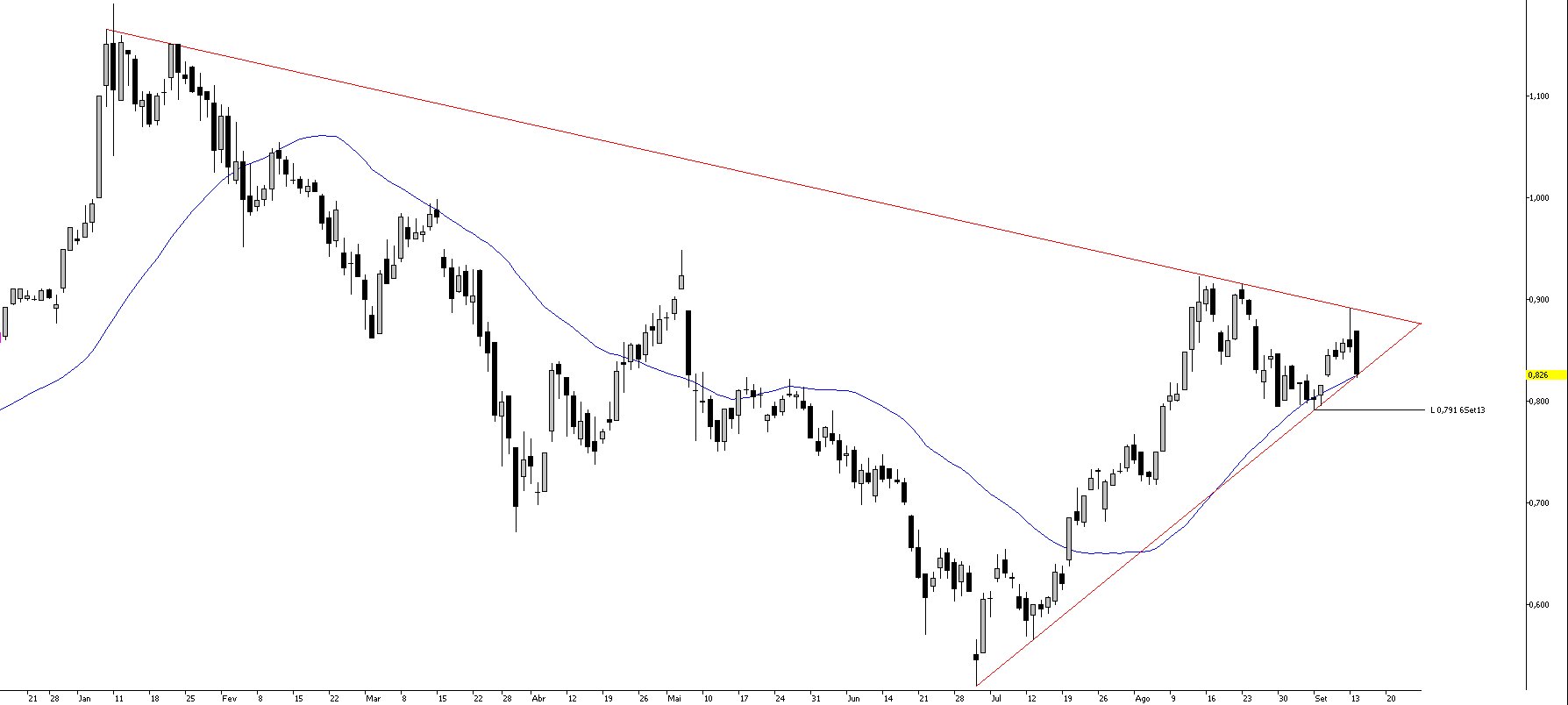 O meu plano para este trade será uma possível venda na casa dos 0,91.