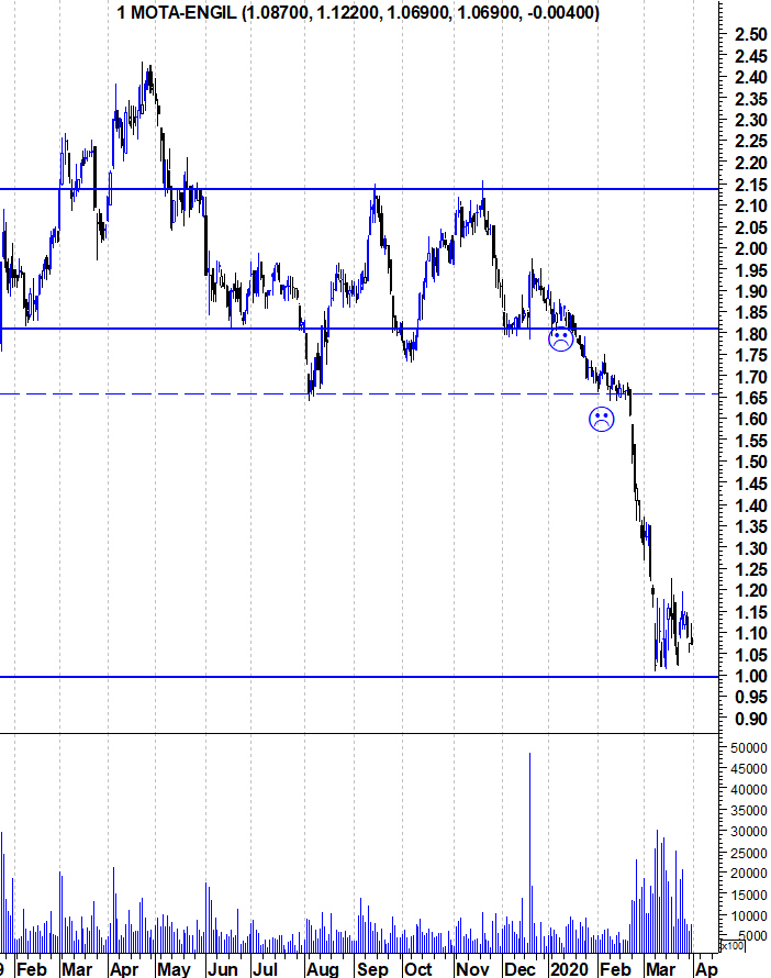 Nestes tempos tenho tido dificuldade em manter-me racional, devia apenas olhar para os gráficos, mas não é fácil com tudo o que se está a passar... o gráfico da Mota foi dos que deu bons sinais de inversão no curto prazo, quebrou o máximo relativo anterior.