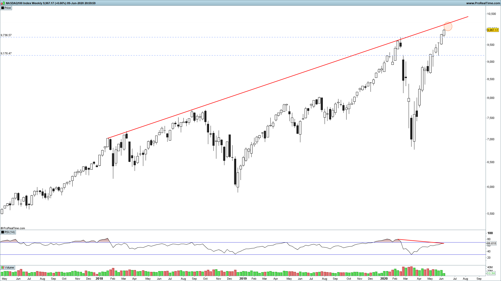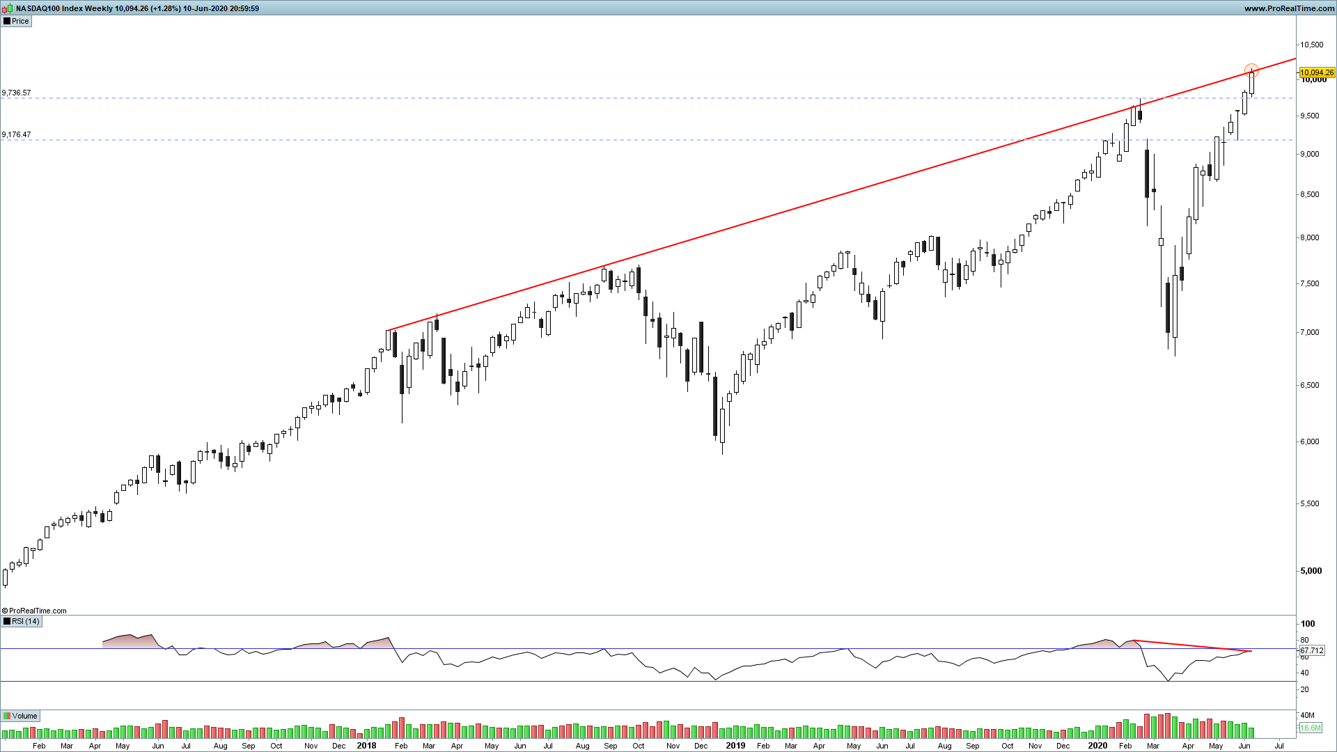 Impressionante! 10.000! Poucos terão apostado neste cenário. E agora irá tentar galgar aquela diagonal teimosa que até agora não foi superada com sucesso. O Spx é que está a ficar para trás. Haverá correção sem esse índice superar o máximo? Correção a sério é pouco provável, isso seria um péssimo sinal para o mercado.