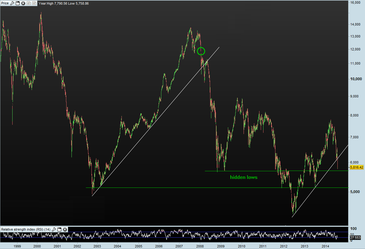 3) o movimento de queda iniciado em Abril14 só deverá estar concluido na zona de hidden lows.