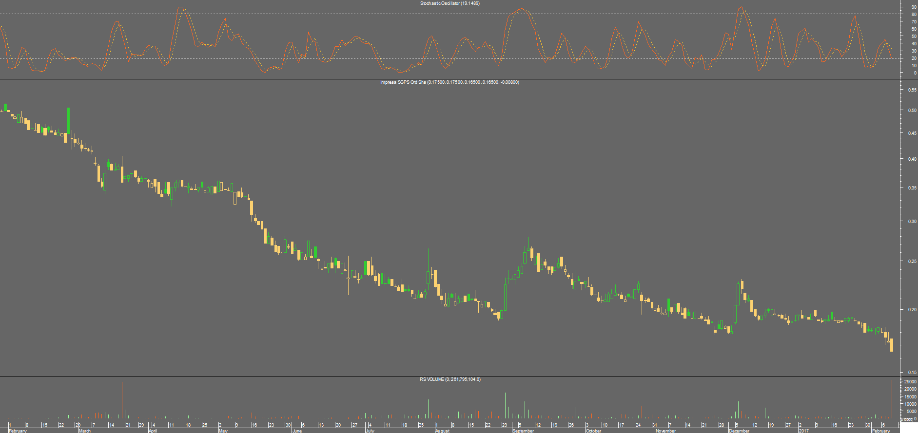 Ulisses, que me fez perder o interesse foi a falta de interesse dos investidores junto a 0.18. Acreditei num ressalto tão importante como o que houve em 0.19, tal não aconteceu e o interesse a voltar, será num tiro no escuro a valores cá mais abaixo. A cofina a subir 2,5% e a impresa em mínimos históricos?!! A coisa não fica por aqui.