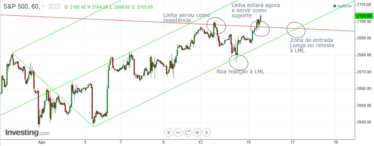 Se se confirmar o reteste à linha é entrar longo, com target na 2ª paralela à ML superior e stop no mínimo de fins de março.