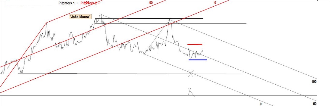 quanto ao pivot C da Fork Vermelha, escolhi-o por ter sido o que originou o 1º movimento de queda a pique (a tal "Width") e para além disso a linha de pivots B-C ajustava-se, com esta escolha, muito melhor ao preço.