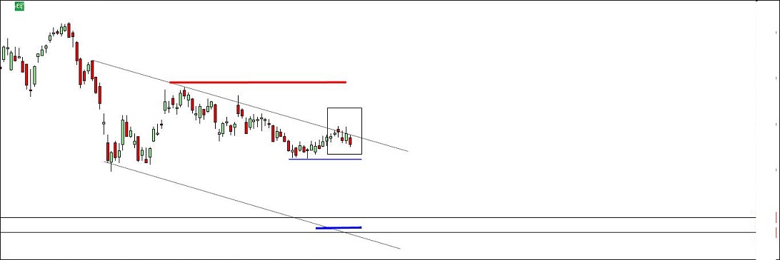 Nota: Obviamente o reteste à LML da fork indicado no gráfico poderá naturalmente ser mais acima (e não na intersecção com a linha de pivots). Por outro lado, a quebra em baixa da linha de pivots anularia este cenário.