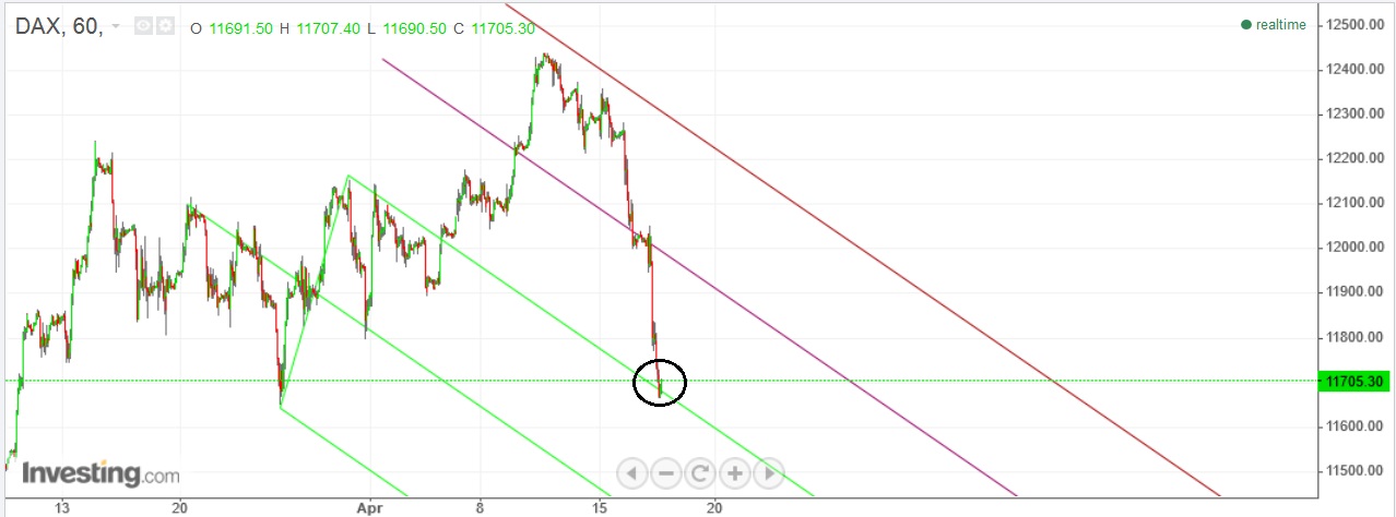 A linha verde foi um antigo suporte do preço antes do JM de fins de Março e foi testada novamente num pequeno JM instantâneo a 1/Abril em que foi logo chutado para cima e com alguma força.