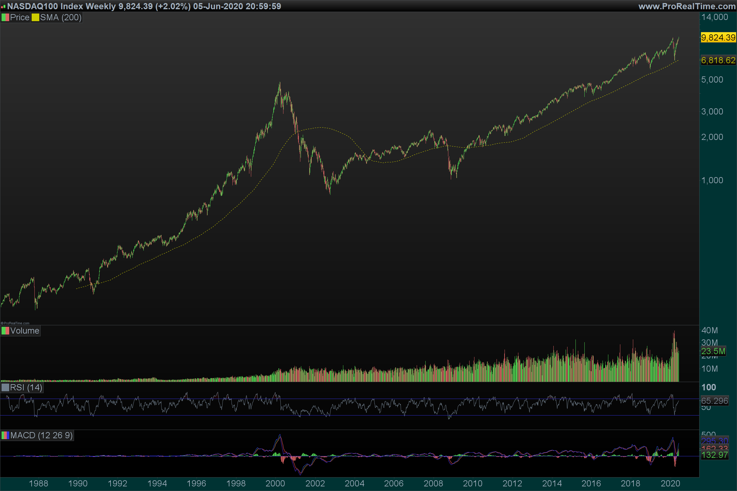 Alguém consegue identificar um bear market? Não existiu, o NASDAQ100 só teve 2 bear markets na história.