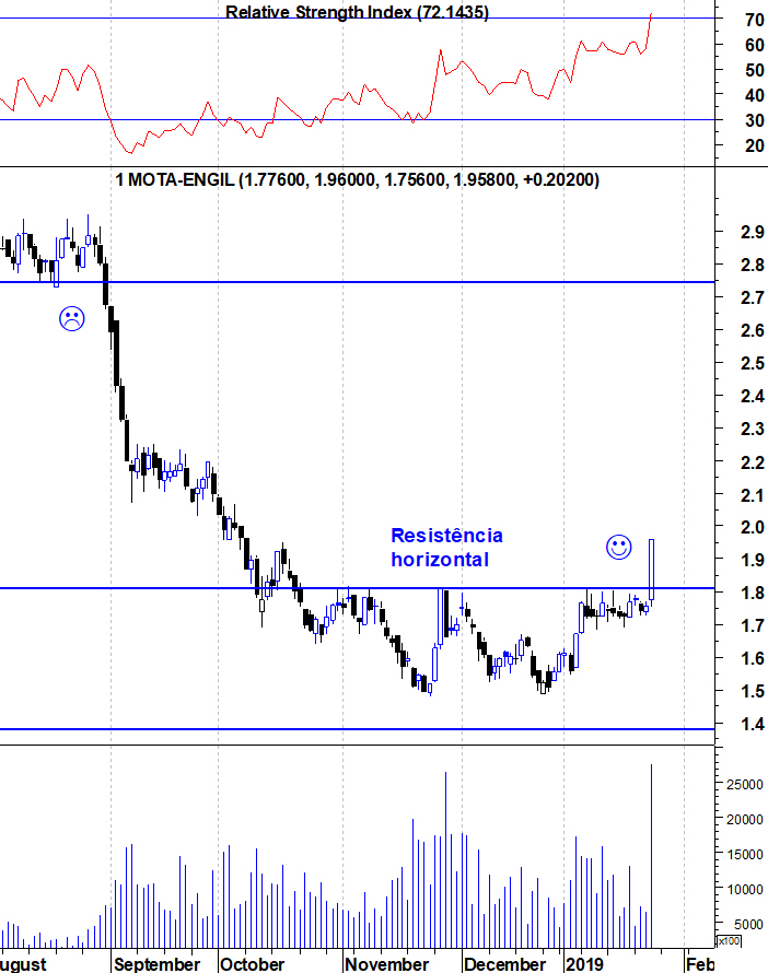 Depois daquelas subidas violentas e com, os indicadores "sobrecomprados", a Mota retraiu 2 sessões e voltou a subir.
