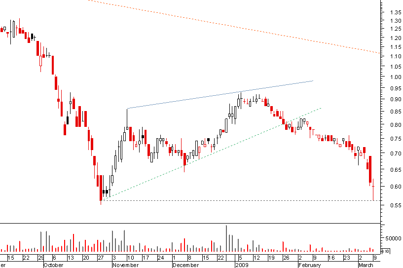 Na minha opinião ela já furou claramente o suporte dos 1.01 e parece-me estar em clara tendência descendente... e penso que o problema desta cotada é essencialmente a falta de liquidez, pois há um mês atrás tudo indicava para uma subida mas ela travou, mesmo após os bons resultados apresentados... Ou então percebi mal os sinais.
