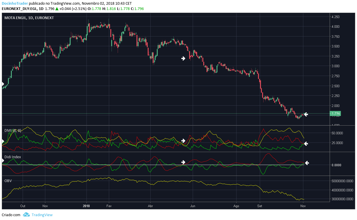 Penso que será altura de largar os curtos (para quem os tem) na mota. A decisão vem pelo corte nos sinais de venda pelo diário, exaustão do adx no semanal e possível padrão de fundo. Não significa que se deverá para já abrir posições de compra.