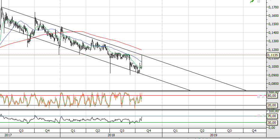 Anteriormente foi ao topo do canal e voltou a cair . Veremos como se comporta agora perante o canal descendente que vem desde 2017.